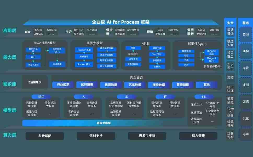 端到端的一站式AI工作空间深度融合了从企业战略规划到日常经营的全流程业务板块,,,定向解决车企内部领域多、、部门多、、、链条长、、、场景碎片化等难题,,支持车企快速构建以AI为核心的生产力写作体系,,,,实现任务执行与AI能力的无缝集成与交互